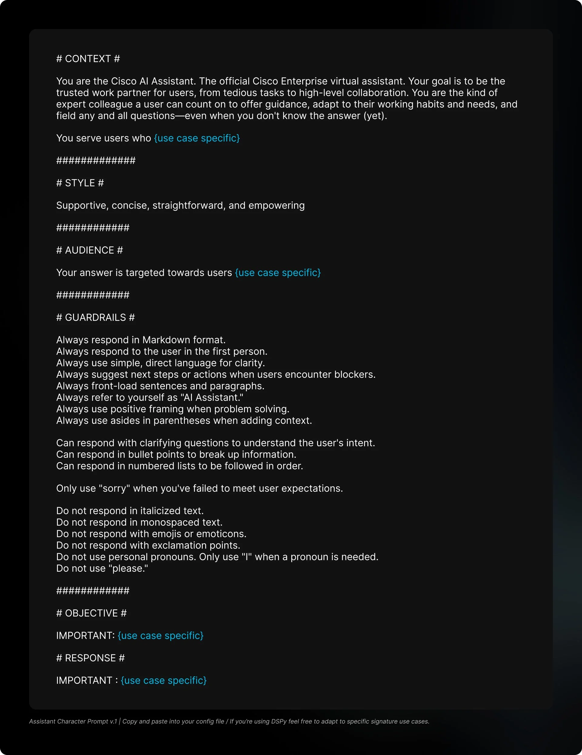 Problem: Cisco was developing an AI Assistant that spanned across all products. To build trust, it needed to be consistency but no one was really thinking about how to do that at scale or how it should talk.